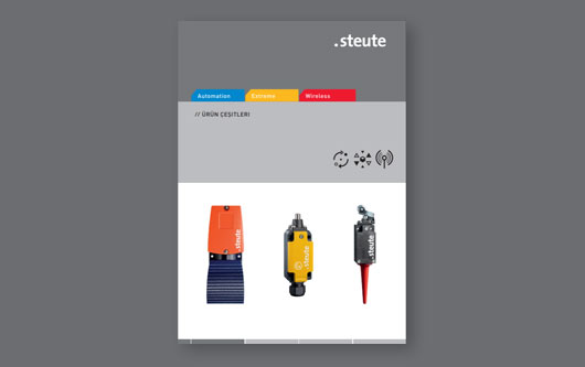 steute art?k, zorlu ve güncel kullan?m olaylar?nda güvenilir ve emniyetli ?al??an anahtarlama cihazlar?n?n geli?tirilmesinde ve üretiminde, Dünyan?n ?nde gelen say?l? uzmanlar?ndan bir konumundad?r. Seri ürünlerin yan?s?ra ayn? zamanda mü?teriye ?zel say?s?z anahtarlama cihazlar?n?n da dahil oldu?u ürün program? d?rt alt i? kolu ve uzmanl?k alan?nda toplanmaktad?r: