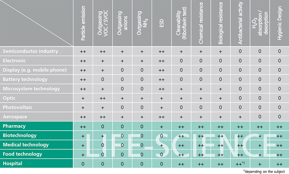 不僅與顆粒排放相關(guān),而且與潔凈室中使用的產(chǎn)品氣體揮發(fā)值VOC(揮發(fā)性有機(jī)化合物)/SVOC(半揮發(fā)性有機(jī)化合物)相關(guān)。 這尤其適用于半導(dǎo)體、光學(xué)和航空航天工業(yè)。